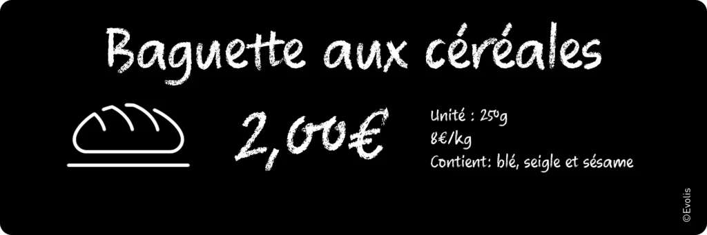Give your bakery shelves and display cases a more professional look with fully customizable bakery signage: add your logo, product names, ingredients, and prices in just a few clicks.