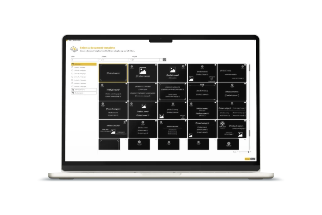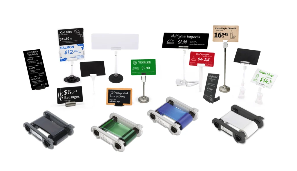 This all-in-one solution perfectly adapts to a variety of display needs. It allows you to create and print presentation labels on PVC cards in standard credit card size or long formats (120 mm and 150 mm).