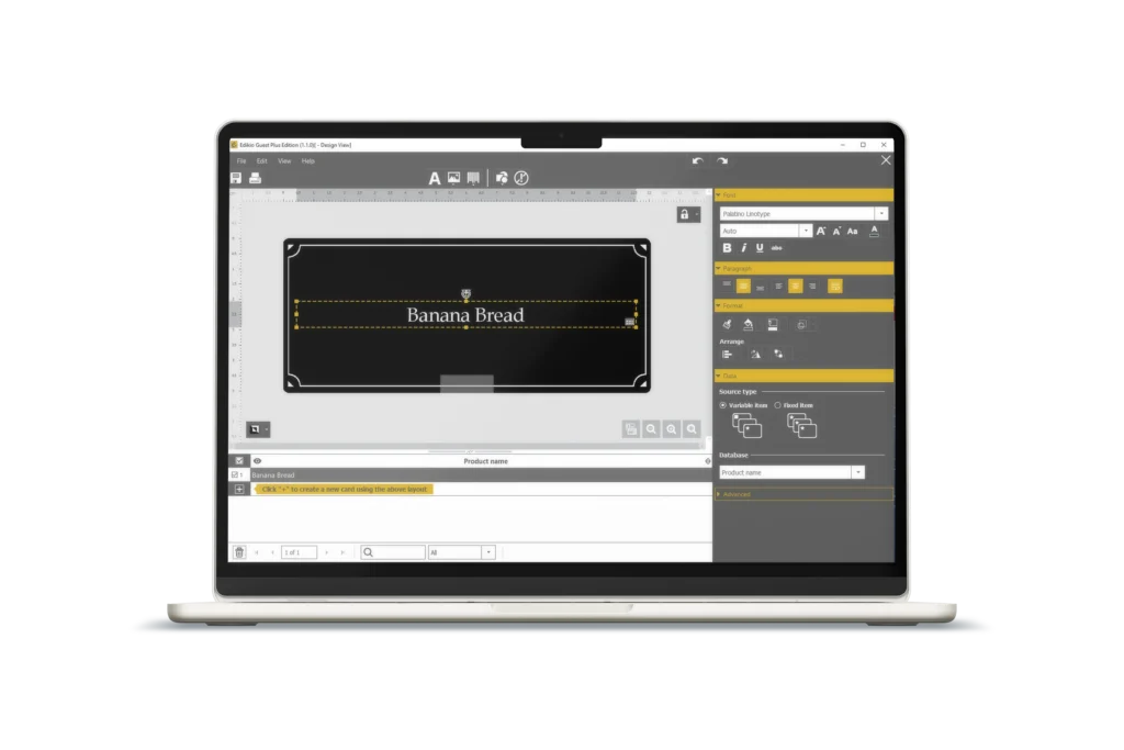 - Simultaneous display of your product list and label preview, which updates automatically when data changes